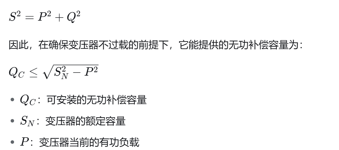 在电力系统中,我们更关心的是变压器能够支撑多大容量的无功补偿装置(如电容器组)。这决定了我们能在该变压器的供电范围内安装多少容量的无功补偿柜。